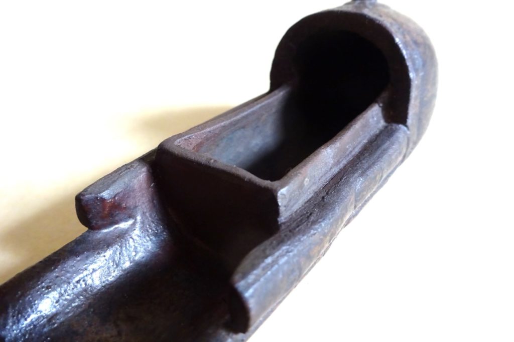 本作は江戸中期頃に製作された香合です。香合自体は桃山末期頃から製作が始まっていますが、基本的には交趾焼香合などの写しが多く、江戸中期においては桃山香合の写しが多いです。そんな中本作は鼠が笙の上に座っているという可愛らしいモチーフで、独自性も感じます。大変な薄造りで緊張感のあるものです。「笙」には「生」に通じるとされ、鳳凰が休んでいる姿にも似ている処から「鳳笙」とも呼ばれます。また「鼠」は多産であるところから「生命力」の象徴でもあります。この二つの意味がどういう組み合わせなのかは判然としませんが、何やら吉祥の意味もありそうです。